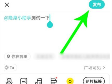 2、在发布瞬间界面点击【@Ta】标志,勾选隐身小助手。