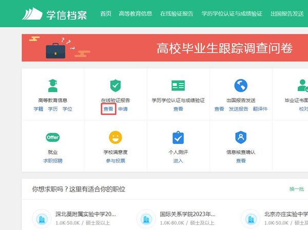 2、进入学信档案后,点击验证报告下方的【查看】。