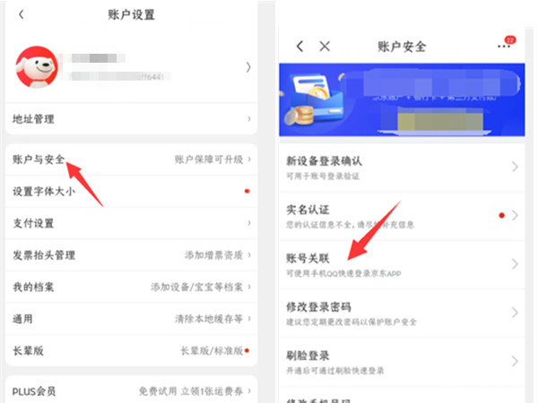 2、选择账号与安全,点击账户关联。