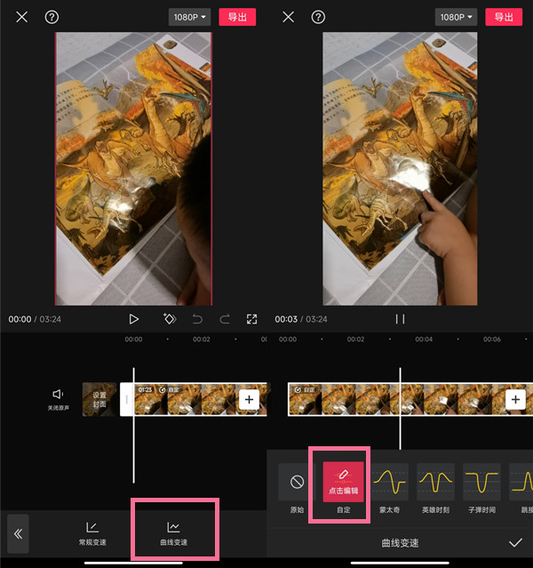 2、点击【曲线变速】,点击【自定】。