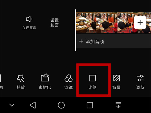 2、导入视频后,点击视频下方的【比例】。