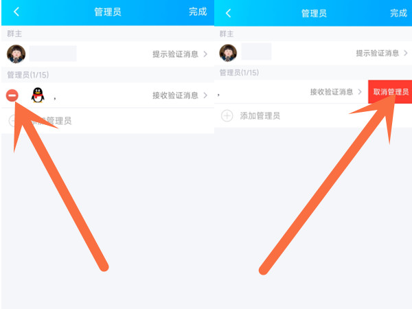 3、点击管理员前面的删除图标,再点击取消管理员即可。