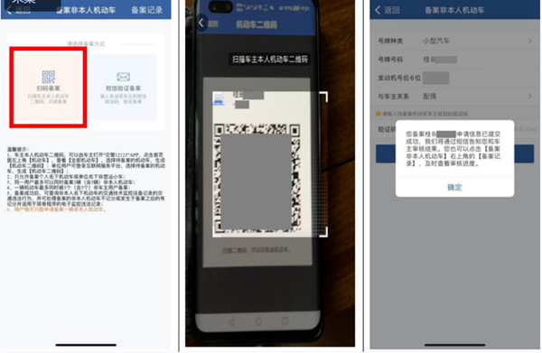 用“扫码备案”的,对于个人名下的待备案机动车,车主用户应当先登录“交管12123”手机APP,生成待备案机动车二维码。对于待备案机动车为单位名下的,单位用户需登录互联网平台后选择待备案机动车生成二维码。二维码生成后,需要备案该机动车的用户使用“交管12123”APP扫码。