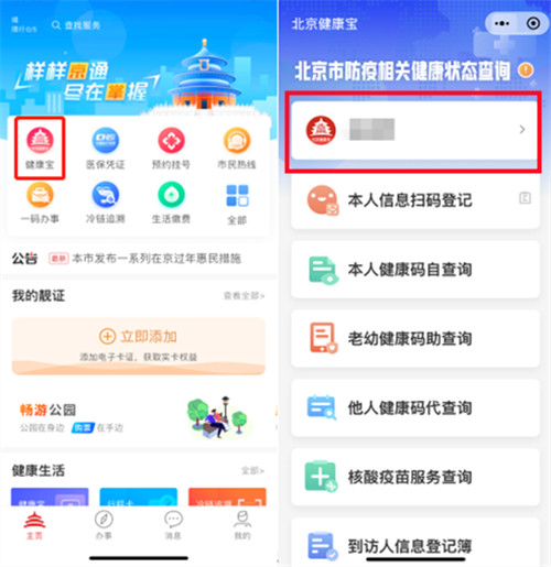 1、打开北京通app,点击【健康宝】,点击【本人健康码自查询】。
