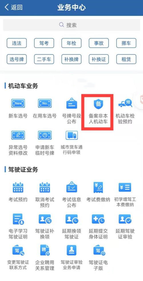 2、点击【备案非本人机动车】选项。
