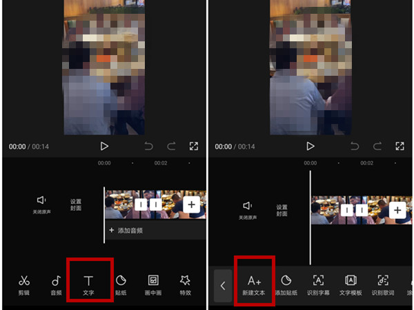 2、导入视频后,打开下方【文字】,点击【新建文本】。
