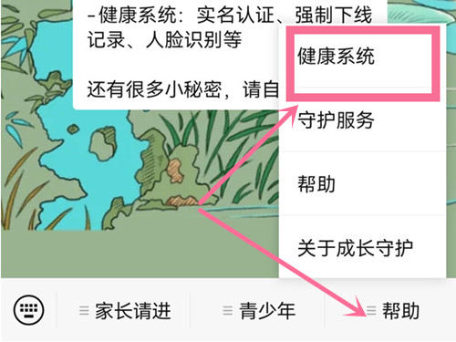 3、点击帮助,选择健康系统即可。