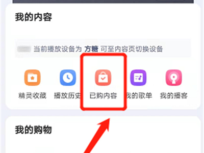 1、在天猫精灵我的页面,点击已购内容。
