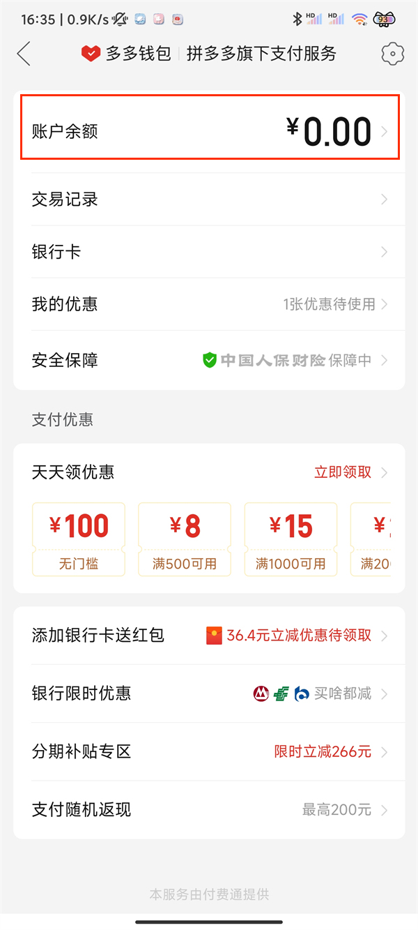 多多支付有充值、提现、支付的功能,用户可以将银行卡里的钱转到多多支付里,付款时就能使用多多支付了。那么多多支付怎么查看余额呢?想知道答案的小伙伴就跟小编一起来看看吧!