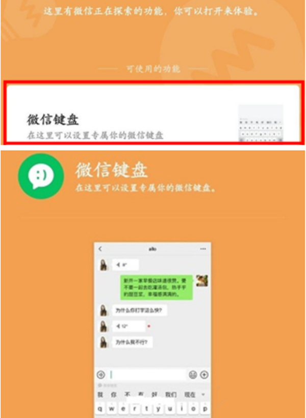 3、点击微信键盘,选择启用该功能即可。