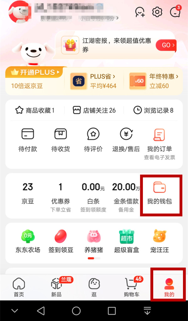 1、打开京东,找到我的,点击我的钱包。