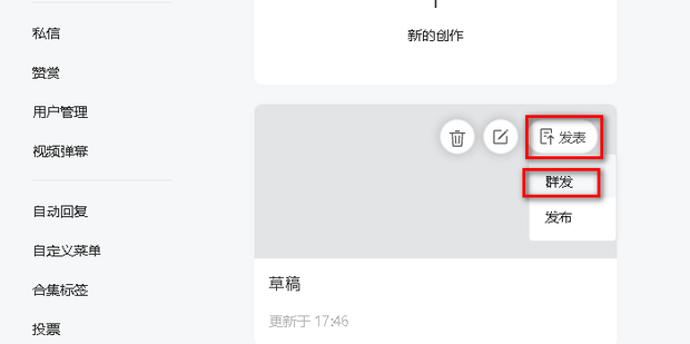 1、在微信公众平台的草稿箱中找到草稿,点击发表群发。