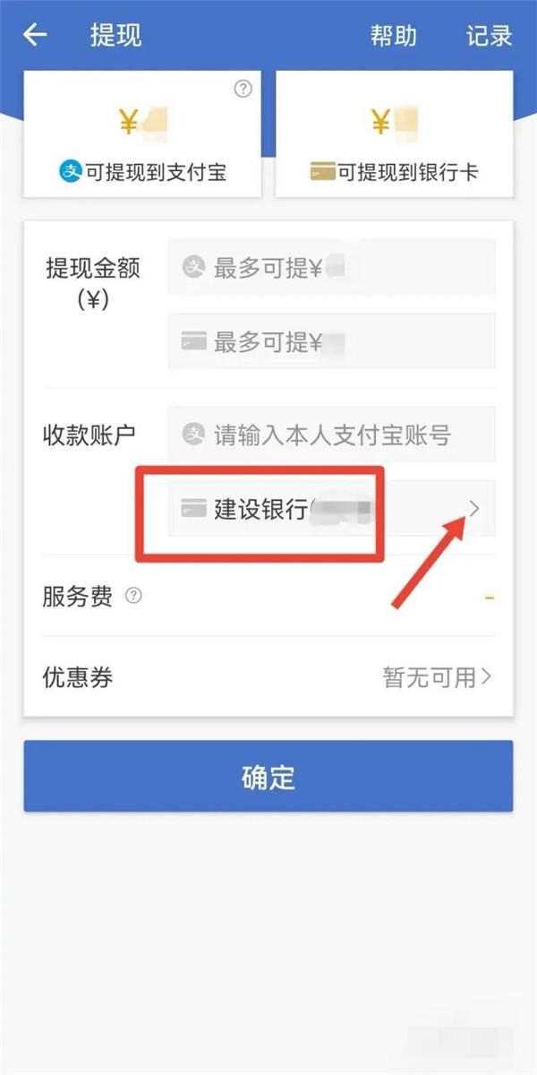 3、进入提现界面,收款账户中点击绑定的银行卡号。
