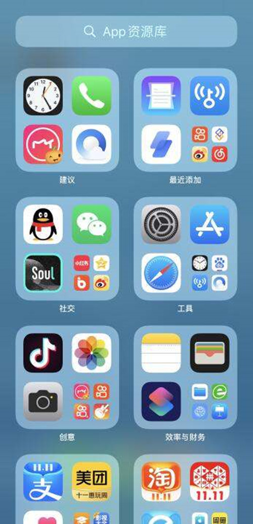 1、手机桌面向左滑动进入APP资源库。