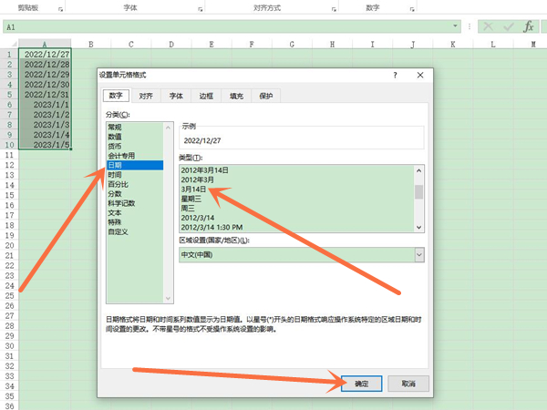 2、点击日期,选择只有月和日的选项,再点击确定即可。