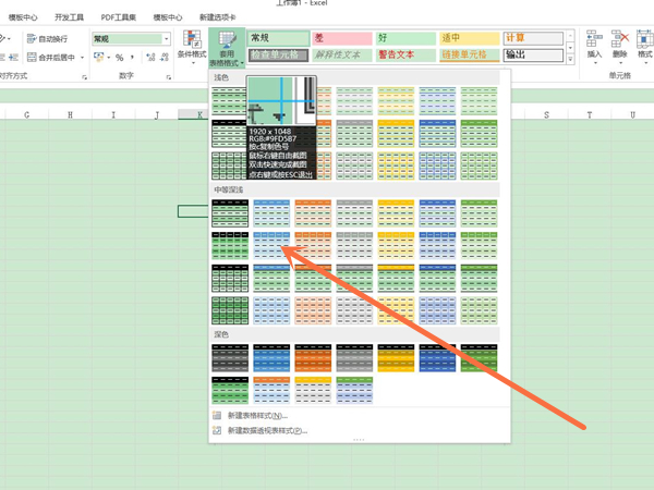 2、点击需要使用的表格样式。