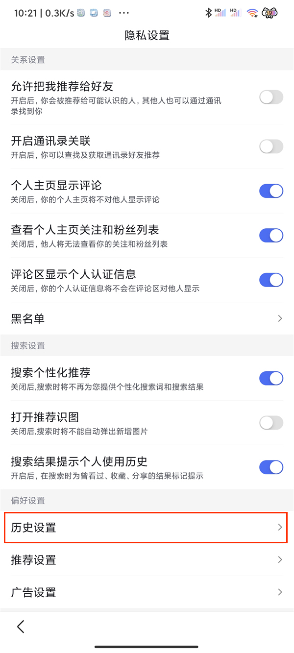 在百度隐私设置中关闭历史记录和搜索历史功能方法: