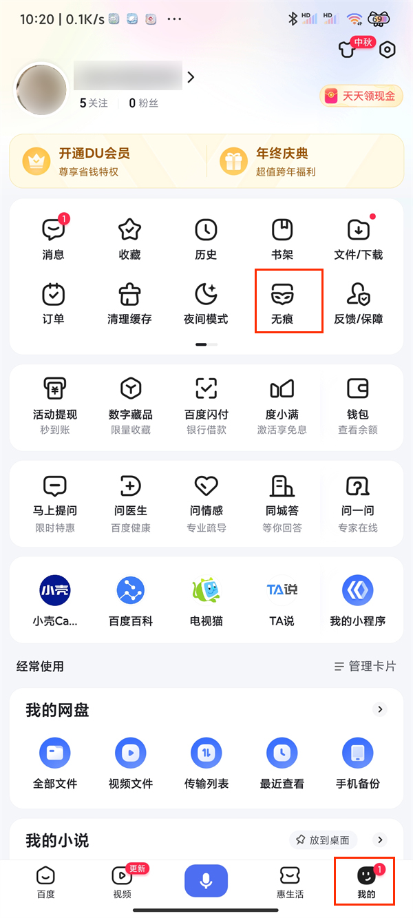 开启无痕浏览方法: 打开手机百度,点击我的,点击无痕即可。