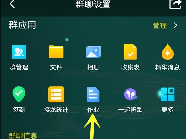 2、在群聊设置界面,点击作业。