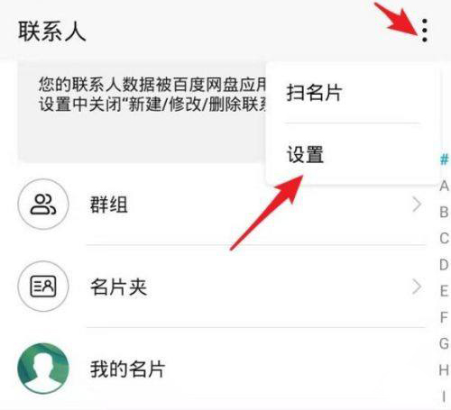 1、在电话联系人界面点击右上角三点图标,点击设置。