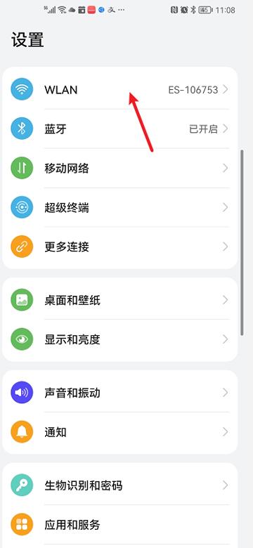 1、在手机设置菜单中点击WLAN选项。