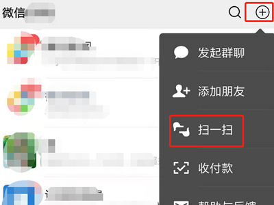 2、打开手机微信,点击右上角加号,点击扫一扫,并扫描平板登录二维码。