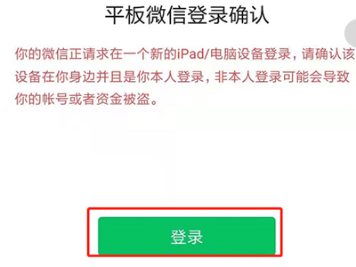 3、手机上点击登录即可实现苹果手机和华为平板同时登录微信。
