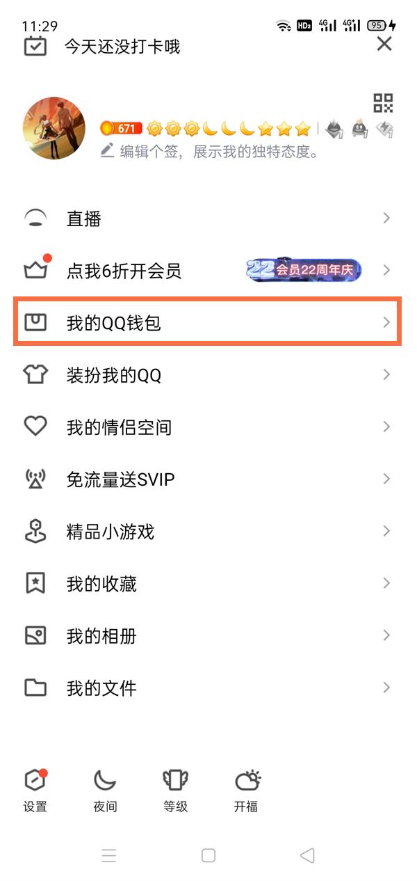 1、点击个人头像后,点击我的QQ钱包。