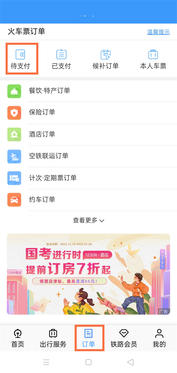 12306怎么取消待支付订单
