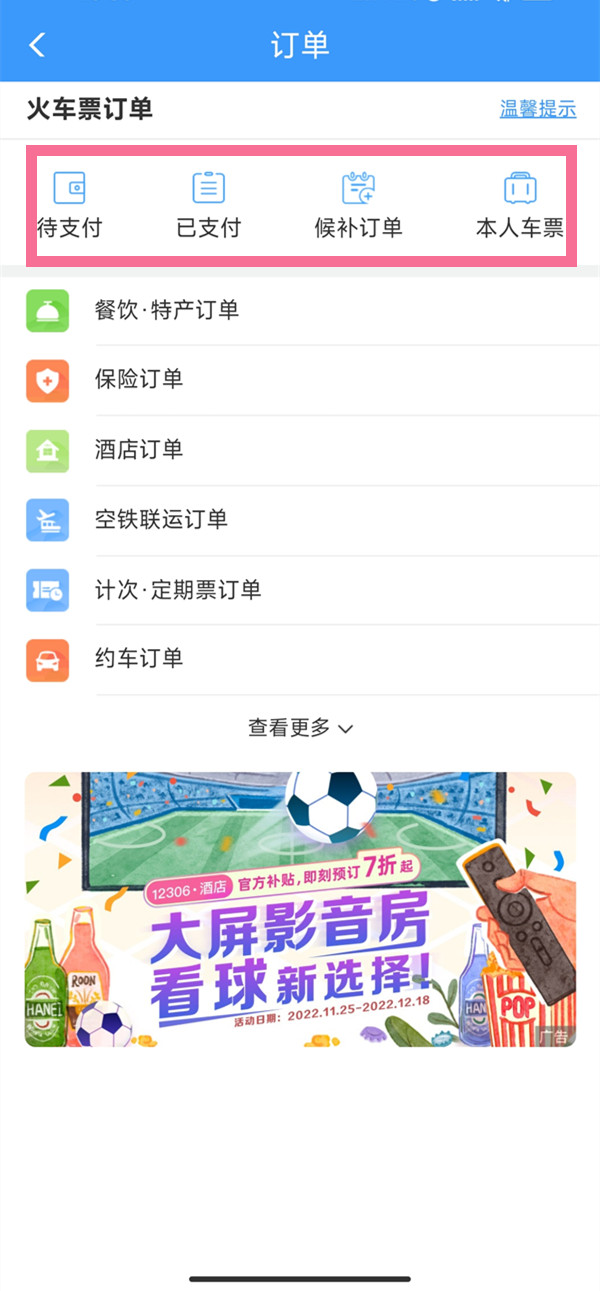 12306系统设定历史订单不可以手动删除 ,自下订单当日起30天后,12306系统就会将历史订单和本人车票记录自动删除。查看订单记录方法如下: