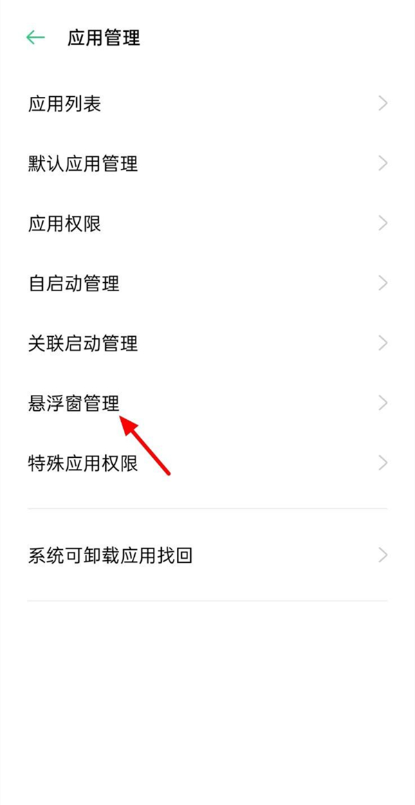 2、在应用管理界面,点击【悬浮窗管理】。