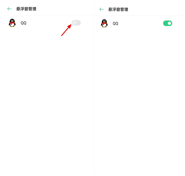 3、在悬浮窗管理界面,【开启QQ】。