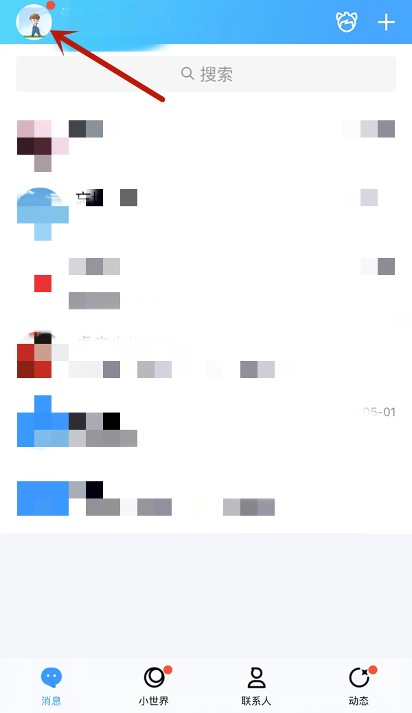 1、在qq的消息页面,点击左上角的【个人头像】。