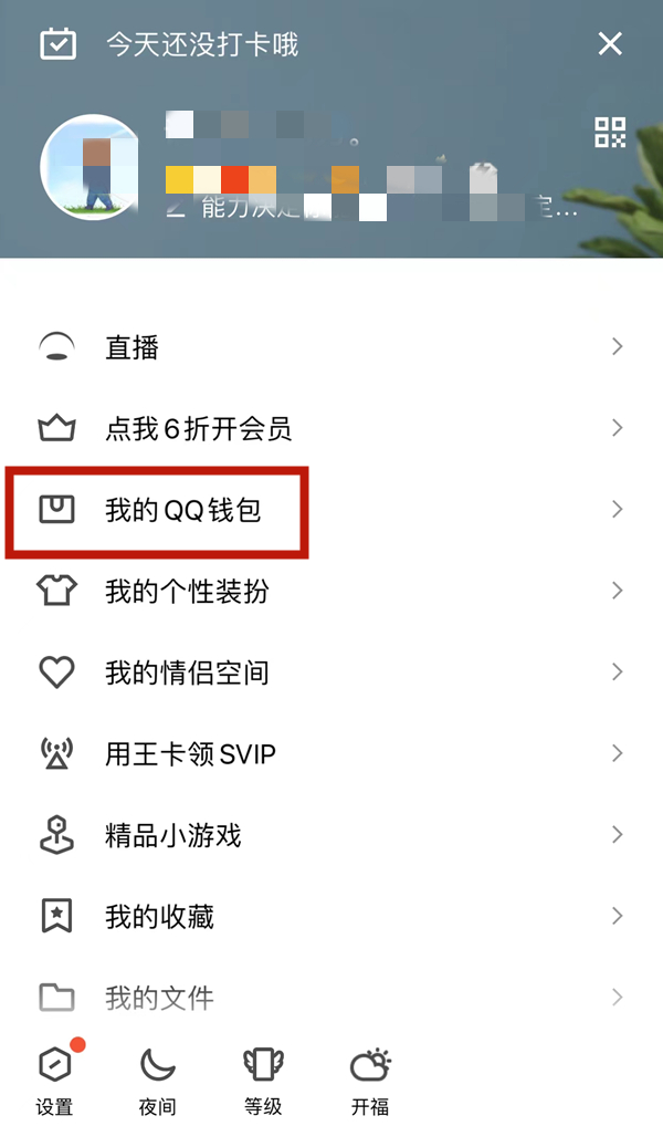 2、在跳转出的页面,点击【我的QQ钱包】。