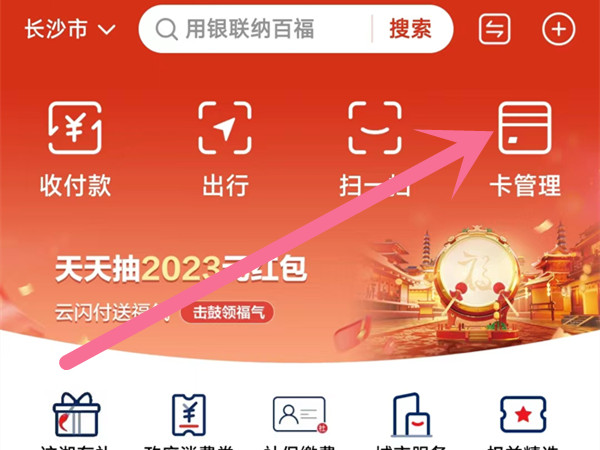 1、打开云闪付app,在首页点击卡管理。