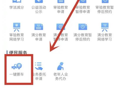 1、在交管12123业务中心页面点击一键挪车。