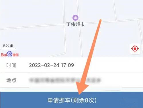 3、成功定位后点击下方的申请挪车选项。