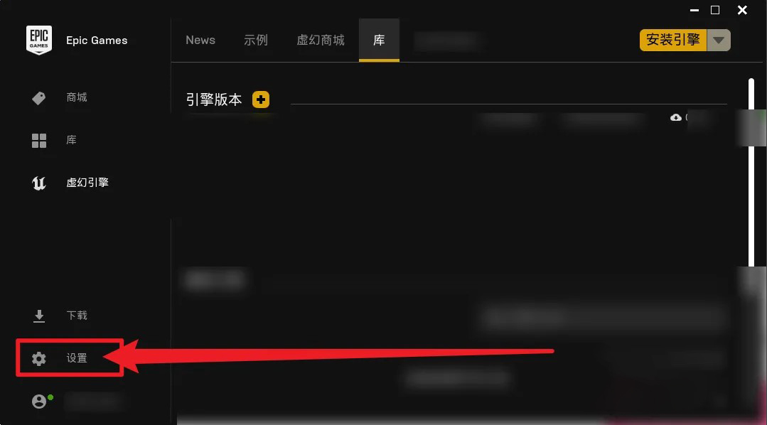 1、打开软件,首先在虚幻引擎界面左侧点击进入设置。