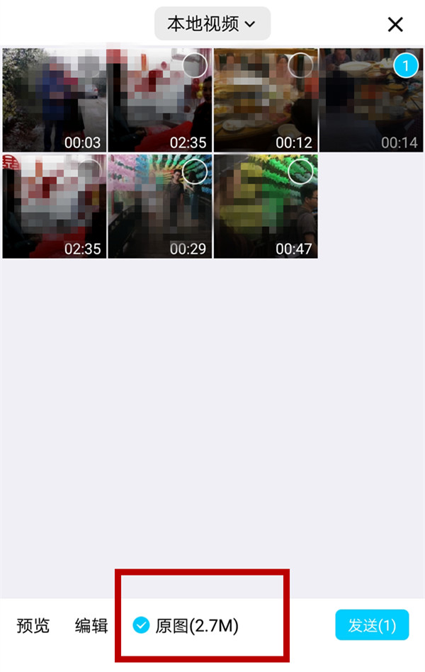 2、选择视频,勾选下方的原图选项。