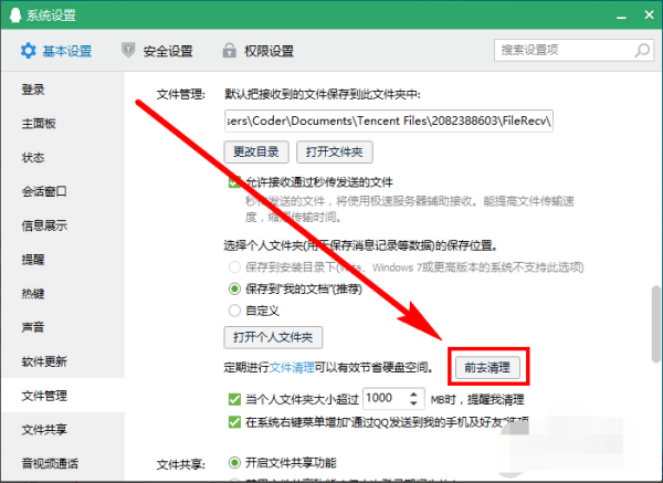 3、在个人文件夹下,点击前去清理。