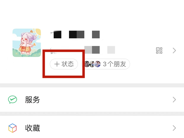 1、在微信我页面,点击+状态。