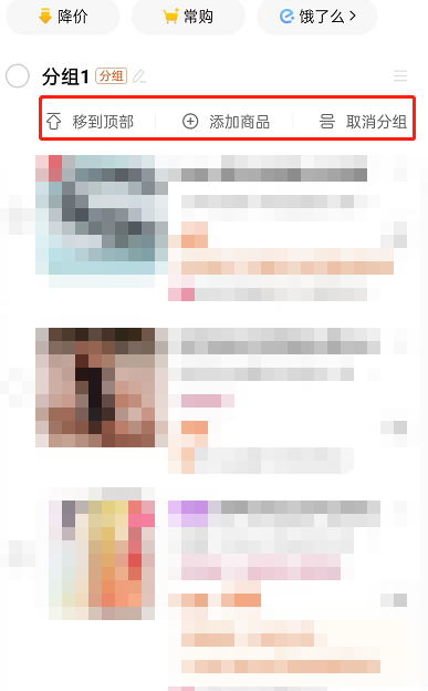6、最后创建分组完成后,还可以进行移到顶部、添加商品、取消分组操作。