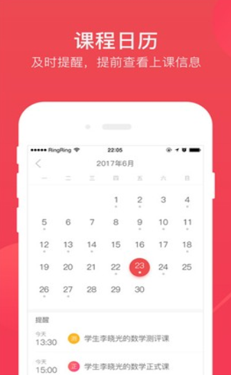 c、专属日历及时提醒上课和提前查看上课信息;