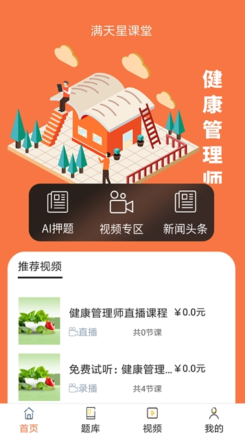 满天星课堂APP是一款教用户大量健康知识的应用软件。这款软件可以帮助用户很好的学到很多的健康知识,还能免费领健康管理师的精品课程;大量的健康导师的视频可以对大家进一步的加深印象,让用户学习到各种优质的课程。