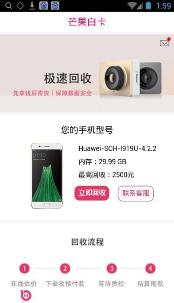 芒果白卡app是一款手机回收应用,通过app可以完成二手手机的快速估价,针对不同型号的手机进行全面的优化评价,同时还有专业员工上门取机,得到公平合理的价格,到账速度也非常的快哦。