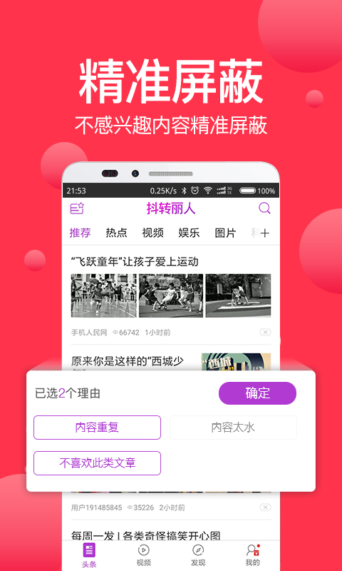4、为用户屏蔽不感兴趣的内容,使用更舒适。