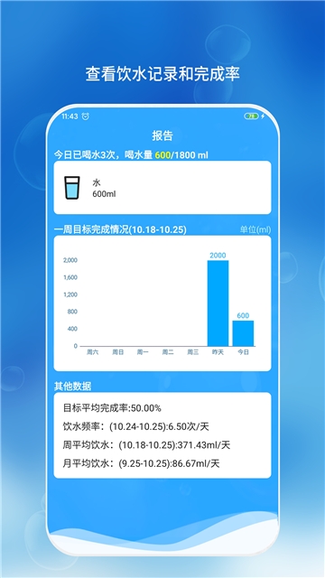4、可以直接知道喝水的量,还能查看喝水的记录,健康生活每一天;