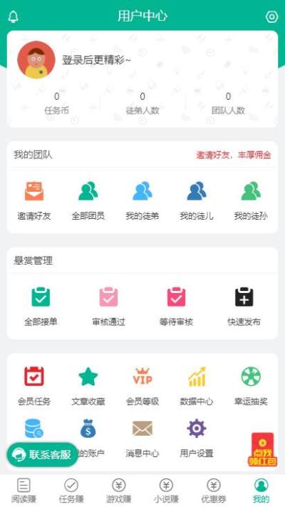 1、多样的任务内容的选择优文章阅读转发、游戏试玩、优惠券分享等;