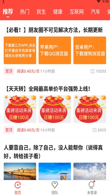 2、资讯文章内容阅读转发的单价是非常可观的阅读转发更多赚取更多;