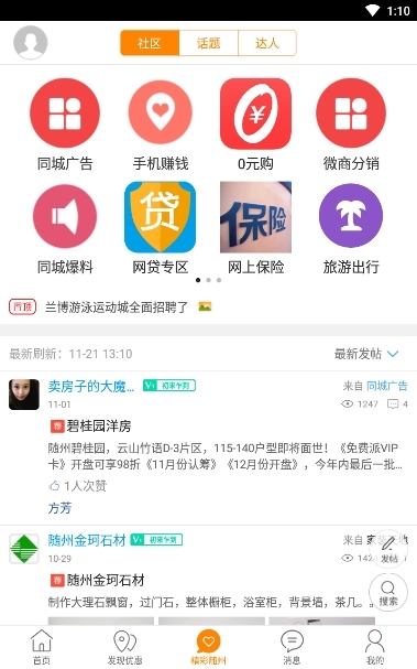 2、可以发现到同城的优惠生活服务的资讯吃喝 玩乐全部覆盖;
